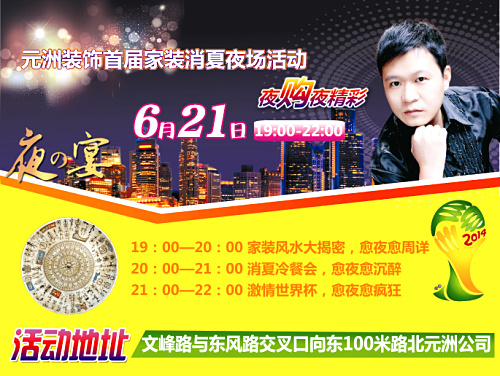 炎炎夏日来临,装修势头不减,为满足广大业主的要求,元洲装饰特定于6月21日——22日举办年中答谢活动,更增加晚消夏夜场,不必再为烈日无法出门烦恼,不必再为工作占用时间忧愁,元洲首届夜场,为您服务贴心更上一层楼,6月21日营业时间延长至晚22:00,更有精彩等您来!
