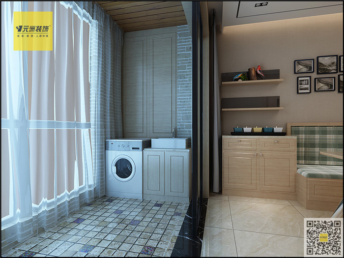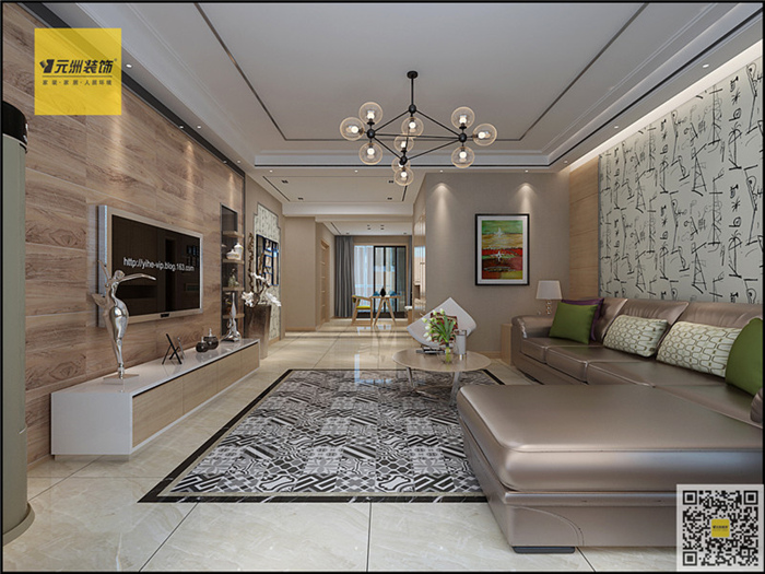 波打线贯穿整个入户通道,使客厅地面更富于变化,同时拉伸空间感。