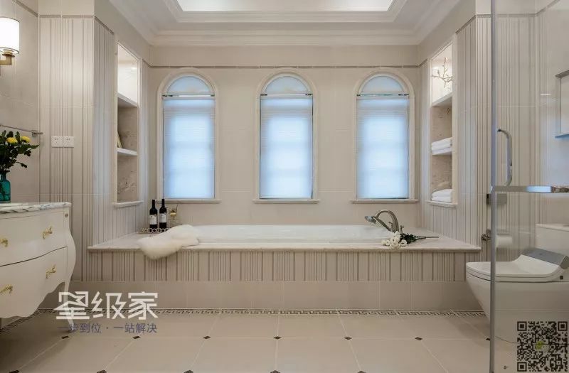 ▲欧式主卫沿用了其他空间的配饰风格,使得整体空间更加有连贯性。合理的分区设计,让房主在沐浴的同时感受生活的惬意,体味生活是一门美妙的艺术。