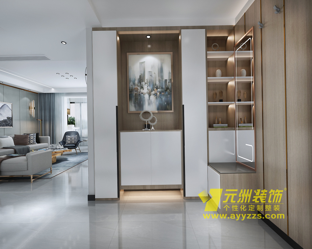 家的温馨,在于我们迈进家门的那一瞬间,身体与心灵油然而生的归宿感,工整美观的内嵌玄关柜、简致文艺的窄框抽象画,典型的现代主义印象,奠定了空间情感基调。